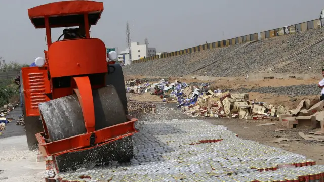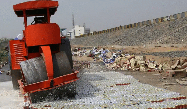 खेड़ा, गुजरात: गुजरात में शराब माफियाओं के खिलाफ पुलिस ने 'ऑपरेशन बुलडोजर' चलाकर बड़ा सख्ती कदम उठाया है। नडियाद में कोर्ट के आदेश और पुलिस की मौजूदगी में कुल 1 करोड़ 21 लाख रुपए की विदेशी शराब पर बुलडोजर चला दिया गया। इस कार्रवाई में 42,000 से अधिक शराब की बोतलों को नष्ट किया गया। कहाँ हुई कार्रवाई और कैसे…
