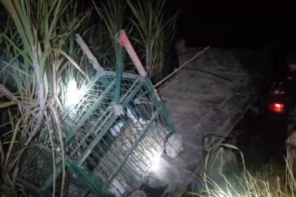 सोनभद्र : तेज रफ्तार एसिड से भरी टैंकर अनियंत्रित होकर पलटी।