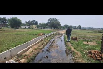 नगर निगम के ठेकेदार का नया कारनामा कीचड़ और पानी में बन रही नाली, मचा हड़कंप