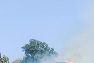 टैक्टर सहित 12 बीघे फसल जलकर हुई राख। लगभग 100 कुंटल धान…