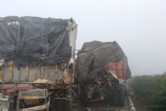हादसे में 4 ट्रक, एक बस व एक कार आपस मे टकराई…