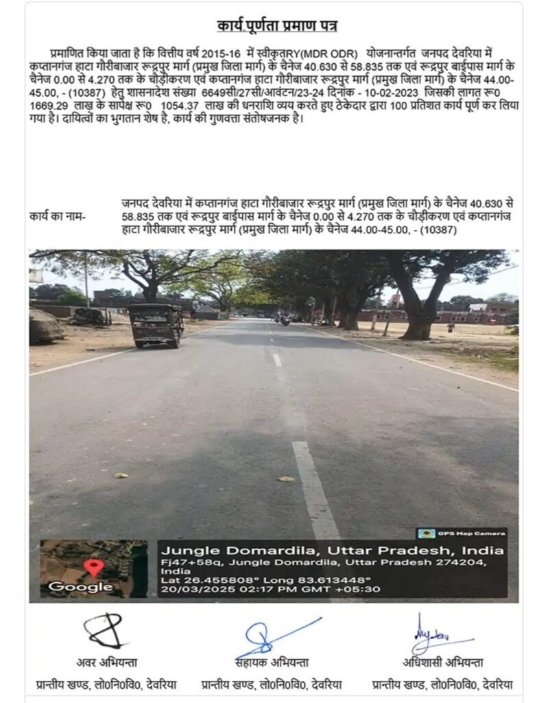 लोक निर्माण विभाग (PWD) देवरिया में सड़क मरम्मत के नाम पर करीब 6 करोड़ रुपये के बड़े घोटाले का पर्दाफाश हुआ है। वर्ष 2015 में बनी सड़क को कागजों में खराब दिखाकर उसकी मरम्मत के लिए करोड़ों की मांग की गई।