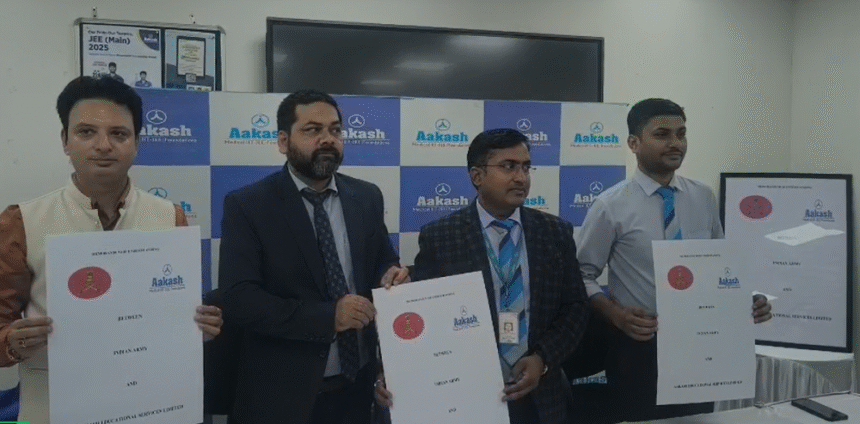 आकाश एजुकेशनल सर्विसेज़ लिमिटेड (AESL) ने भारतीय सेना के जवानों और उनके परिवारों के लिए एक महत्वपूर्ण पहल की घोषणा की है। अयोध्या में आयोजित एक प्रेस कॉन्फ्रेंस के दौरान कंपनी ने बताया कि उसने भारतीय सेना के साथ एक समझौता ज्ञापन (MoU) पर हस्ताक्षर किए हैं। इस साझेदारी का मुख्य उद्देश्य सेवारत सैनिकों, पूर्व सैनिकों और उनके परिवारों को बेहतर शैक्षणिक सुविधाएं और कल्याणकारी लाभ प्रदान करना है।