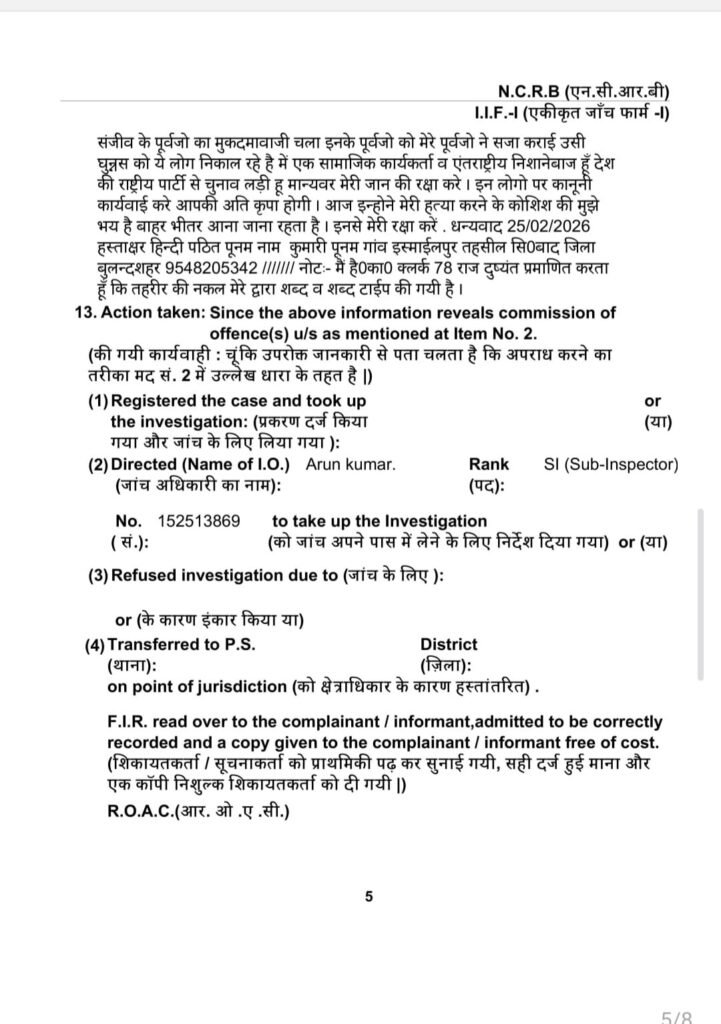 हमले के बाद कांग्रेस नेत्री ने तत्काल पुलिस को सूचना दी और अपनी तहरीर दी। उनकी शिकायत पर दो नामजद आरोपियों के खिलाफ सिकंदराबाद कोतवाली में गंभीर धाराओं में मुकदमा दर्ज कर लिया गया है। पुलिस मामले की जांच में जुटी है और आरोपियों की तलाश तेज कर दी गई है।