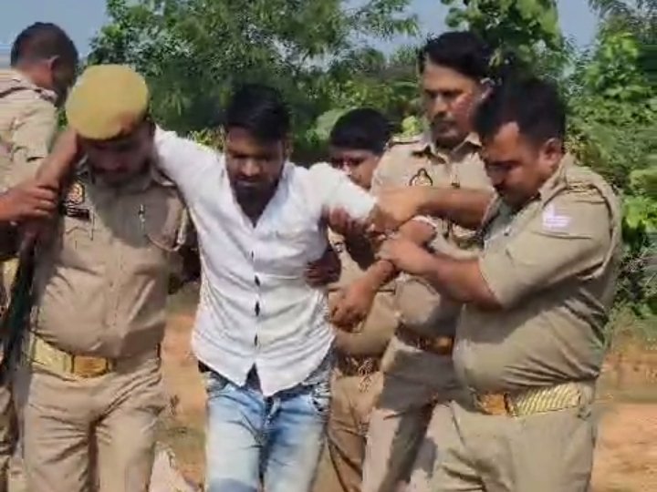 डीसीएम गाड़ी से उतरकर भाग रहा अफजाल ने पुलिस पर की फायरिंग।